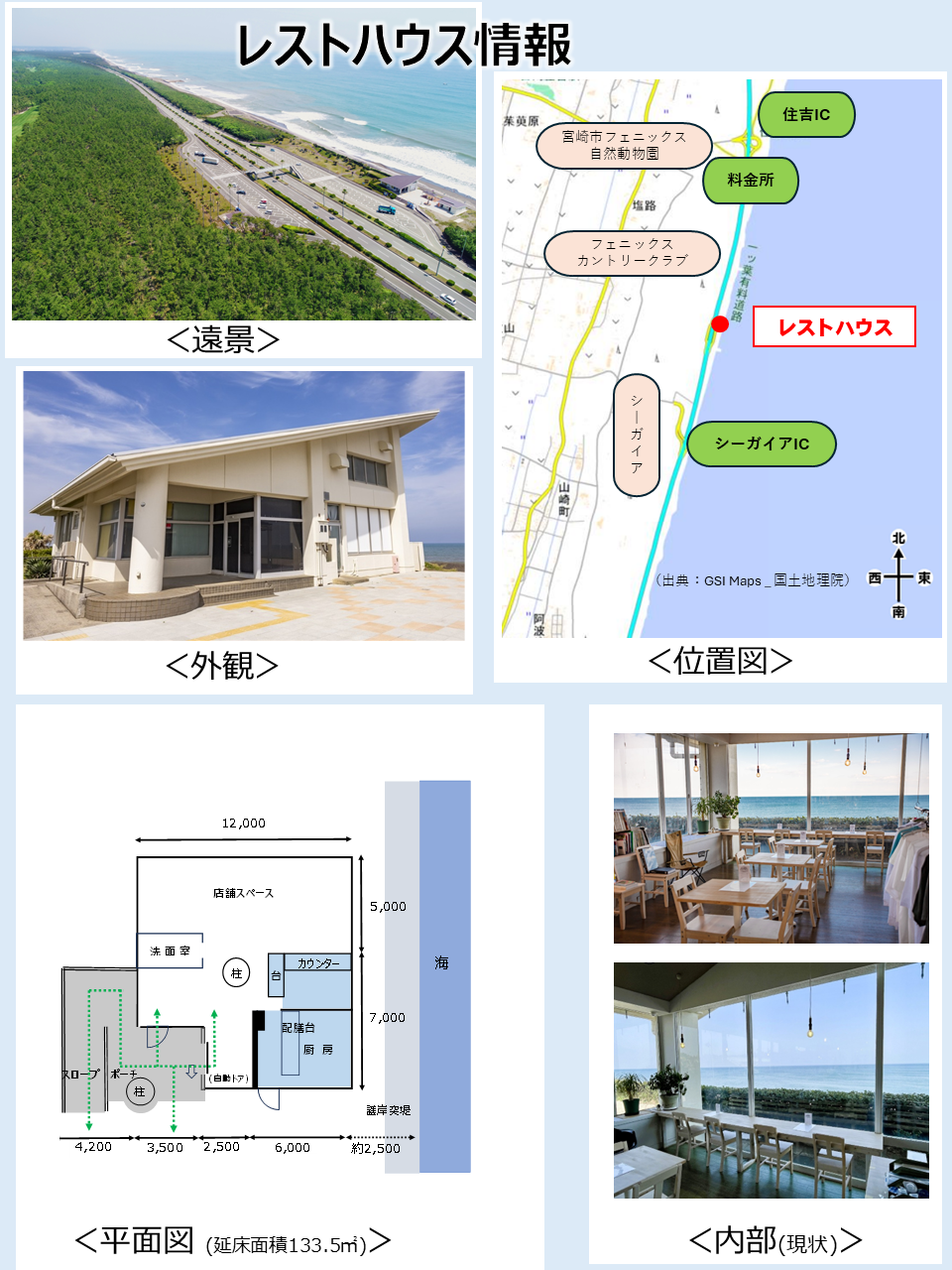 一ツ葉有料道路パーキングエリア内にある休憩施設の営業者を募集します。 詳しくは下記の募集要領をご覧ください。 募集要領 (様式1)一ツ葉有料道路休憩施設営業申込書 (様式2)営業経歴書 (様式3)事業計画書 (様式4)会社等役員名簿 (様式5)誓約書 (様式6)現地説明会参加申込書 チラシはこちらから 〇お問合せ先 宮崎県道路公社道路課 電話:0985-25-1588