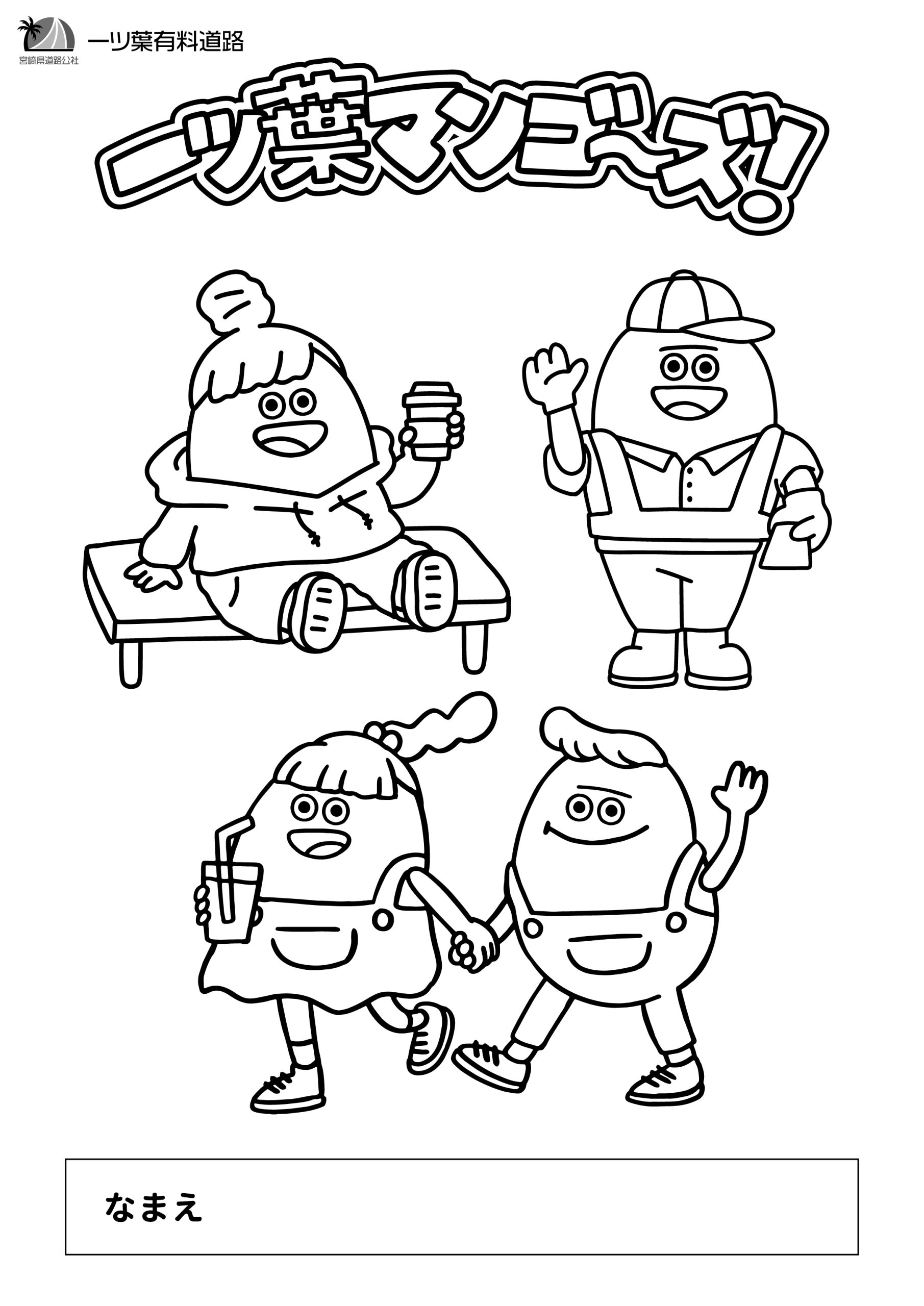 この機会にオーシャンビューをのぞむ北線パーキングに足をお運びいただき、幼稚園・保育園の年長さんが作成した当公社の公式キャラクター「一ツ葉マンゴーズ」のぬりえをご覧になってください。
