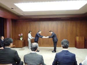 この感謝状は、一ツ葉大橋耐震工事の完成や現場見学会への協力などにより、一ツ葉道路の耐震対策の強化と職員の技術力向上に大きく貢献していただいたことに対して贈呈されたものです。